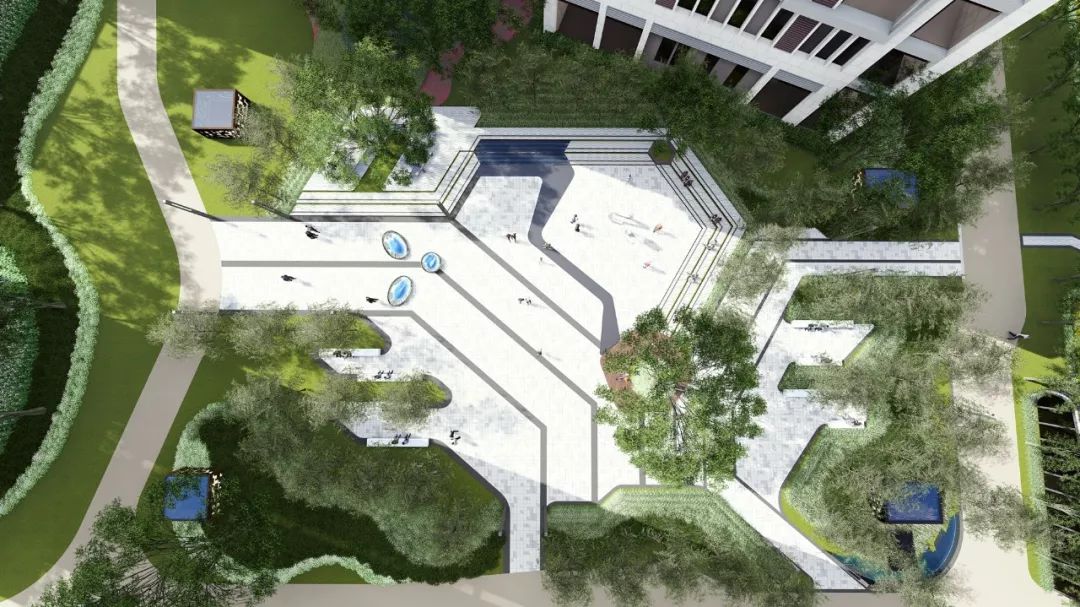 中庭大廣場,綠動園林設(shè)計(jì)師以開放性大空間為主,搭配多樣私密性討論小空間,同時(shí)引入共享理念,引入活力的共享空間。廣場外圍綠樹環(huán)繞,打造綠色生態(tài)環(huán)境。
