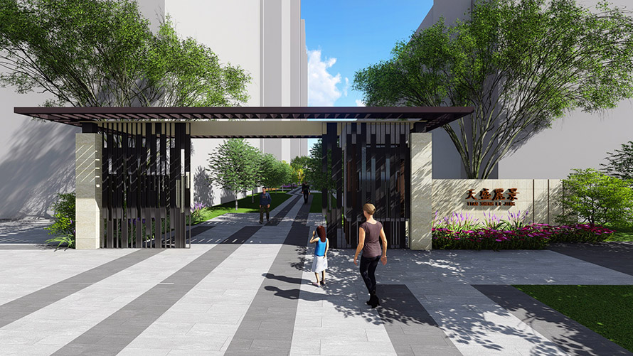 ▲天盛麗景·三期小區(qū)主入口效果圖1