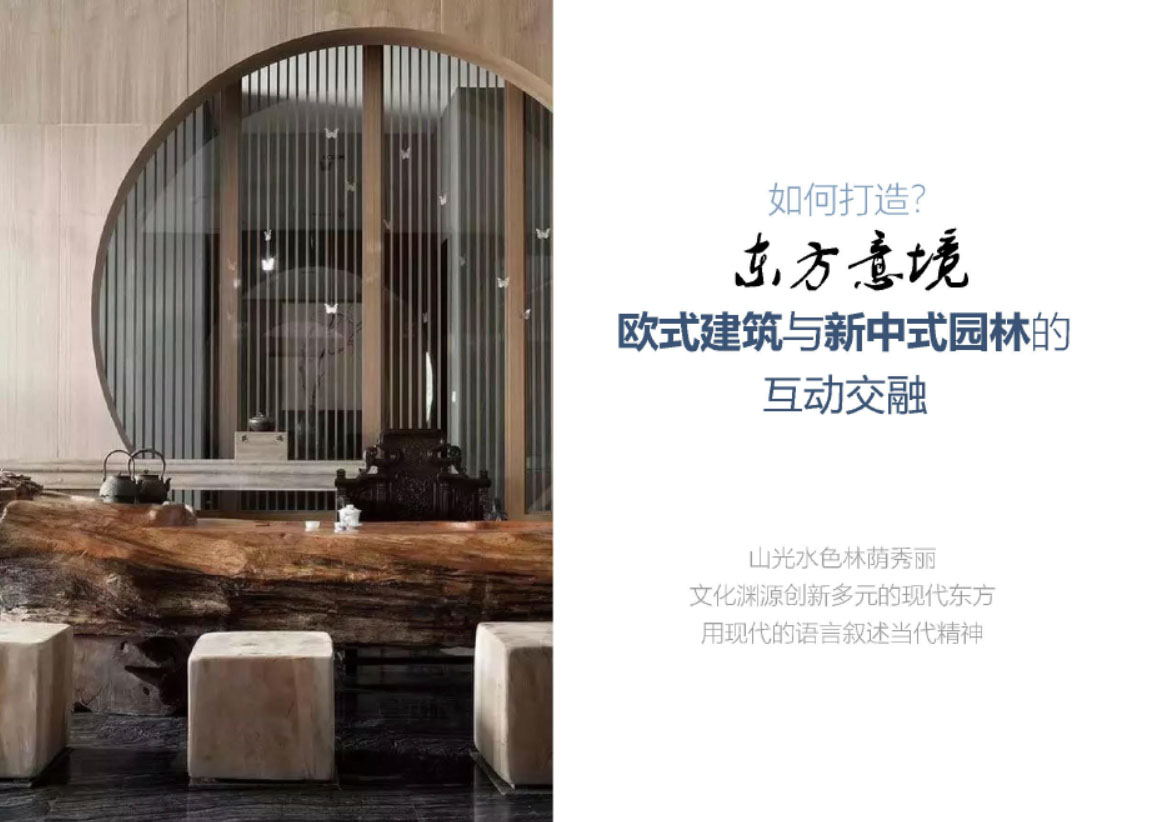 步移景異的游覽體驗在入園之初就帶給視野收放自如的不同感受。通過做差異化的景觀,將新中式景觀契合場地背山面水的特征,展現(xiàn)精致的東方美學(xué)與經(jīng)典西方美學(xué),傳統(tǒng)元素與現(xiàn)代手法相融合的“文化馨品”。