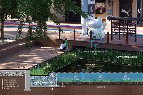 秉持著“基于源頭控制、延緩沖擊負(fù)荷”的雨水設(shè)計(jì)理念,阿普貝思研發(fā)團(tuán)隊(duì)力圖營建一個(gè)與自然地理?xiàng)l件相適應(yīng)的雨水調(diào)蓄裝置,借此實(shí)現(xiàn)雨水的資源化管理。同時(shí),運(yùn)用景觀化處理手段,使植物與材料成為花園主角,讓雨水設(shè)施重新煥發(fā)生機(jī)與活力。