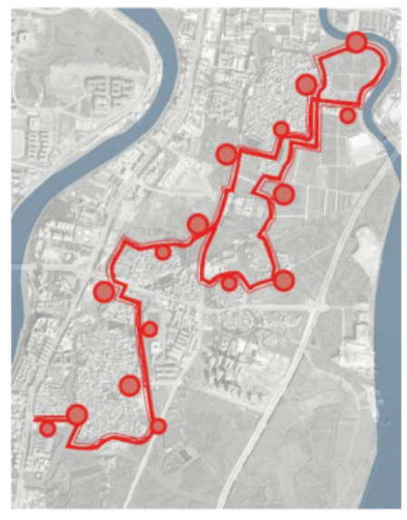 本案設計利用人流量研究來確定游玩的關鍵路線,以此創(chuàng)建獨特的公共親水空間,提高行人的體驗,滿足他們的需求。親水廣場設計的植物景觀解決了綠道綠地的問題,柳絮飄飄,產(chǎn)生平靜和放松感,人行空間的統(tǒng)一通過材料顏色和園路布置得以加強,還有特殊功能,如水簾、不同的綠植和休憩空間,開發(fā)了每個廣場的特點。
